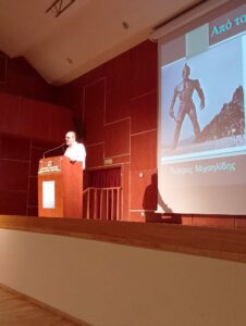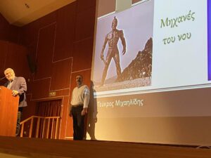 Στη Δημόσια Κεντρική Βιβλιοθήκη, το κοινό παρακολούθησε με εντυπωσιακή προσήλωση την αφήγηση που ξεκινούσε από τον μύθο του Τάλω και έφθανε μέχρι τις σημερινές προκλήσεις της Τεχνητής Νοημοσύνης – μια διαδρομή που ανέδειξε την αδιάκοπη συνομιλία ανθρώπου και τεχνολογίας μέσα στους αιώνες.